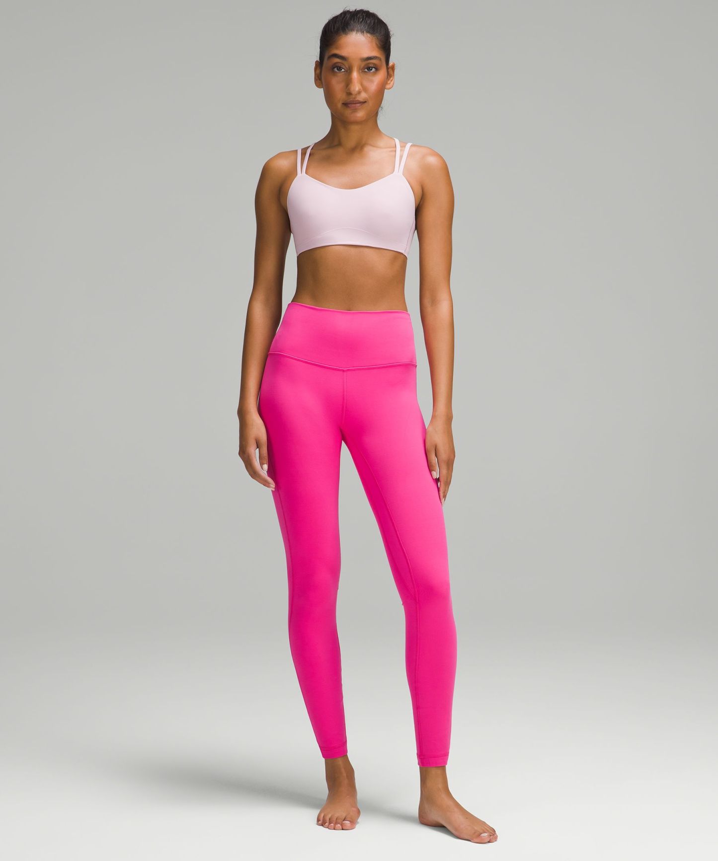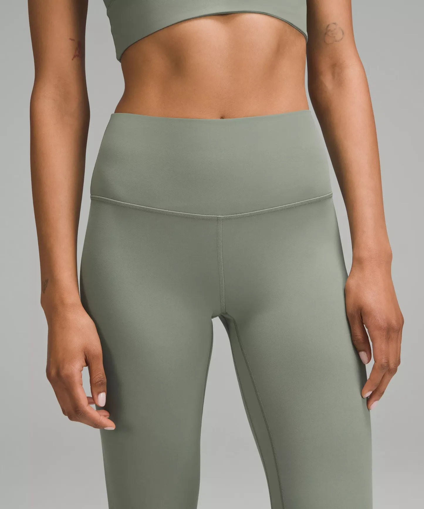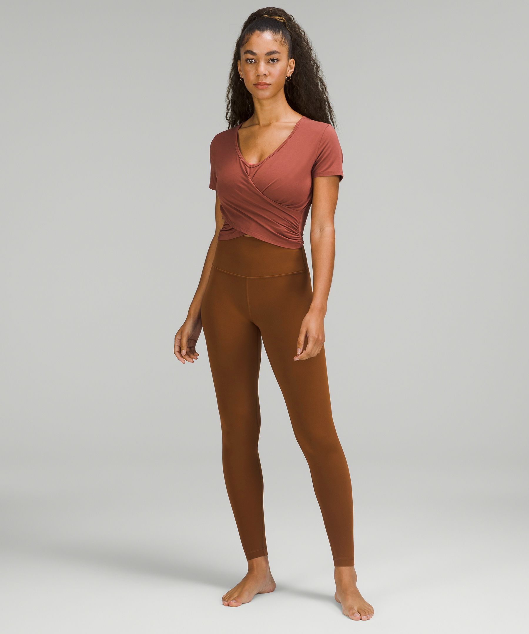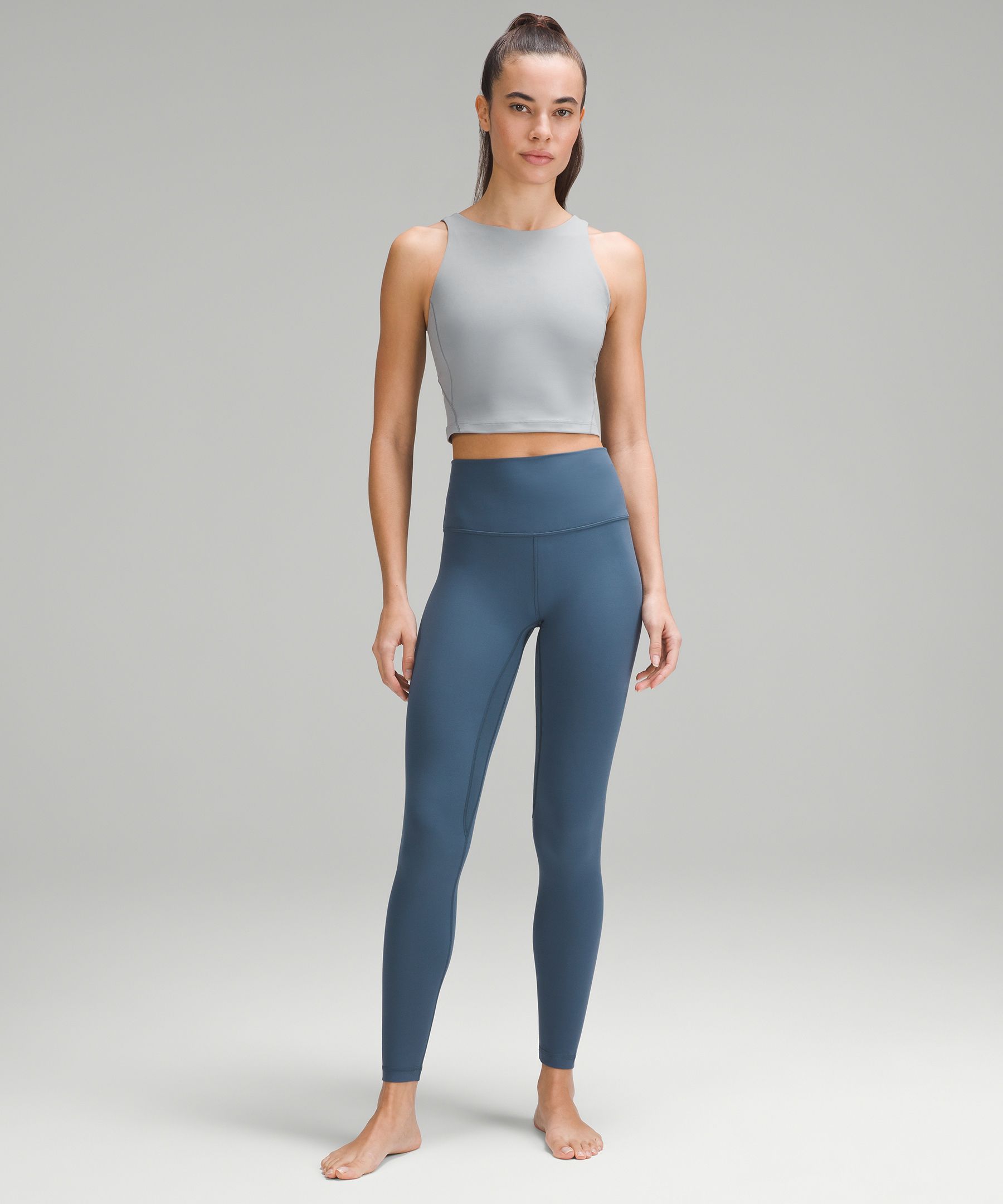 A high-rise waistband keeps you covered during forward folds and downward dogs. Our 28" length is intended to sit at your ankle.