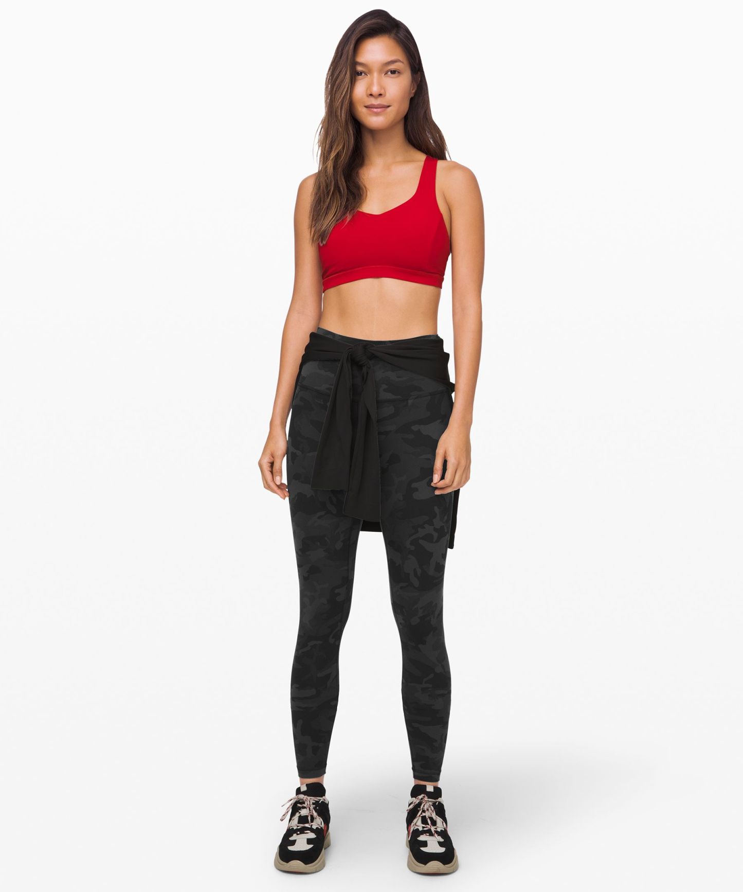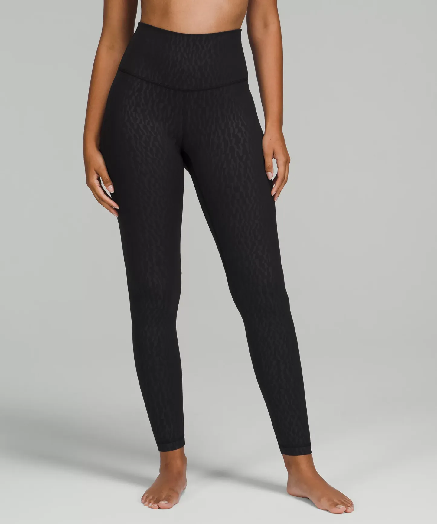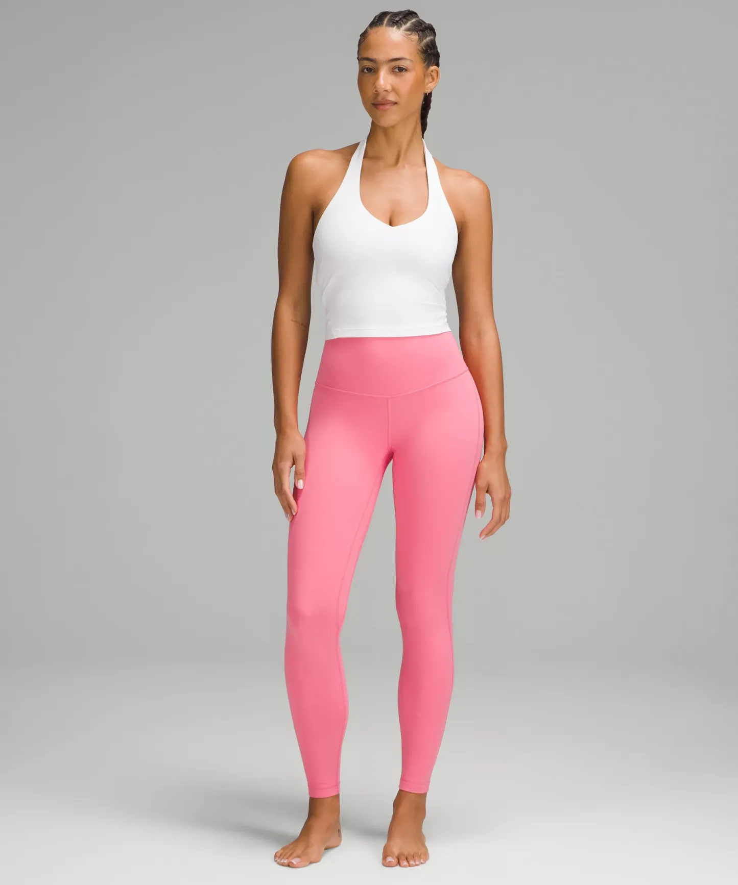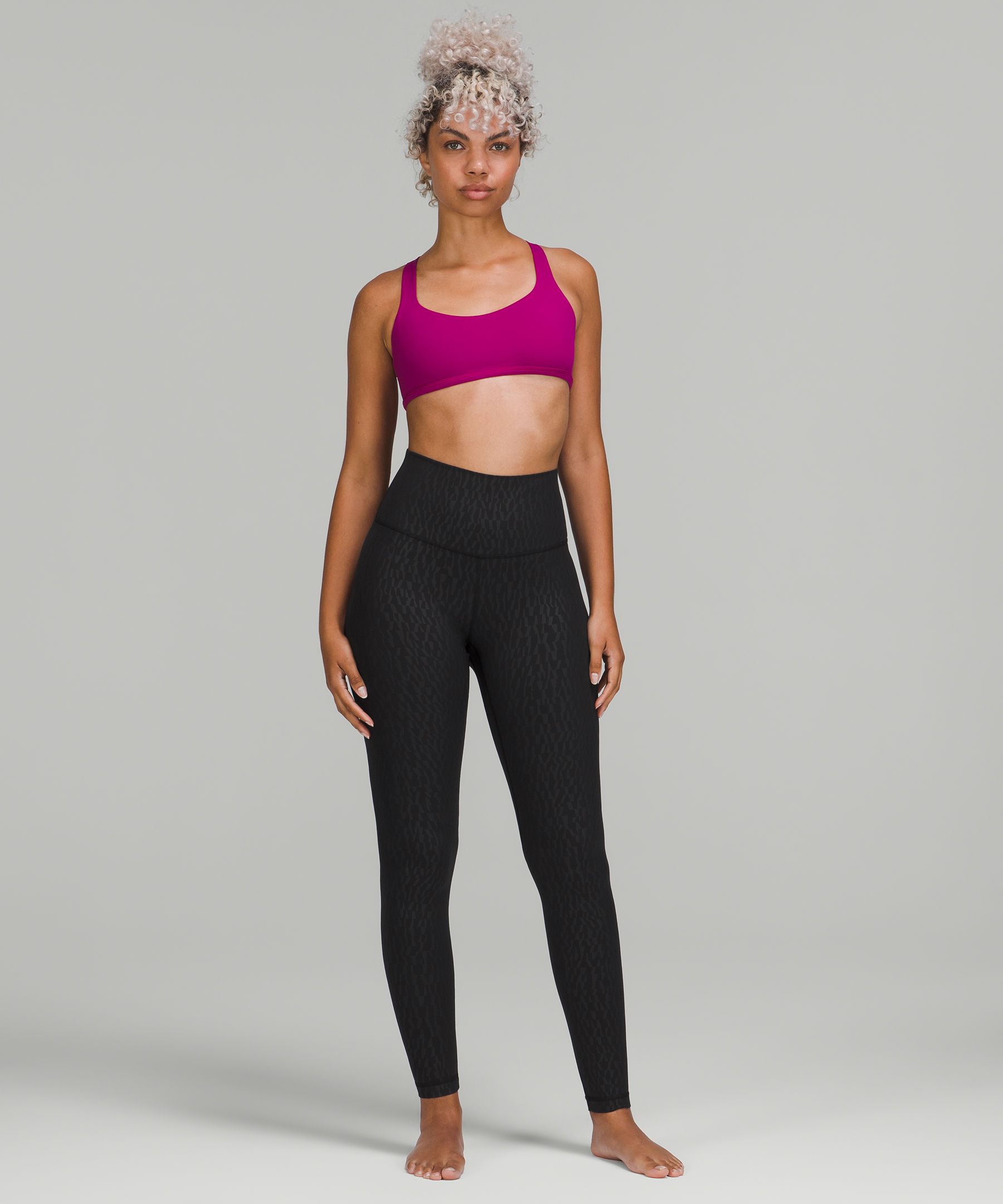 A high-rise waistband keeps you covered during forward folds and downward dogs. Our 28" length is intended to sit at your ankle.